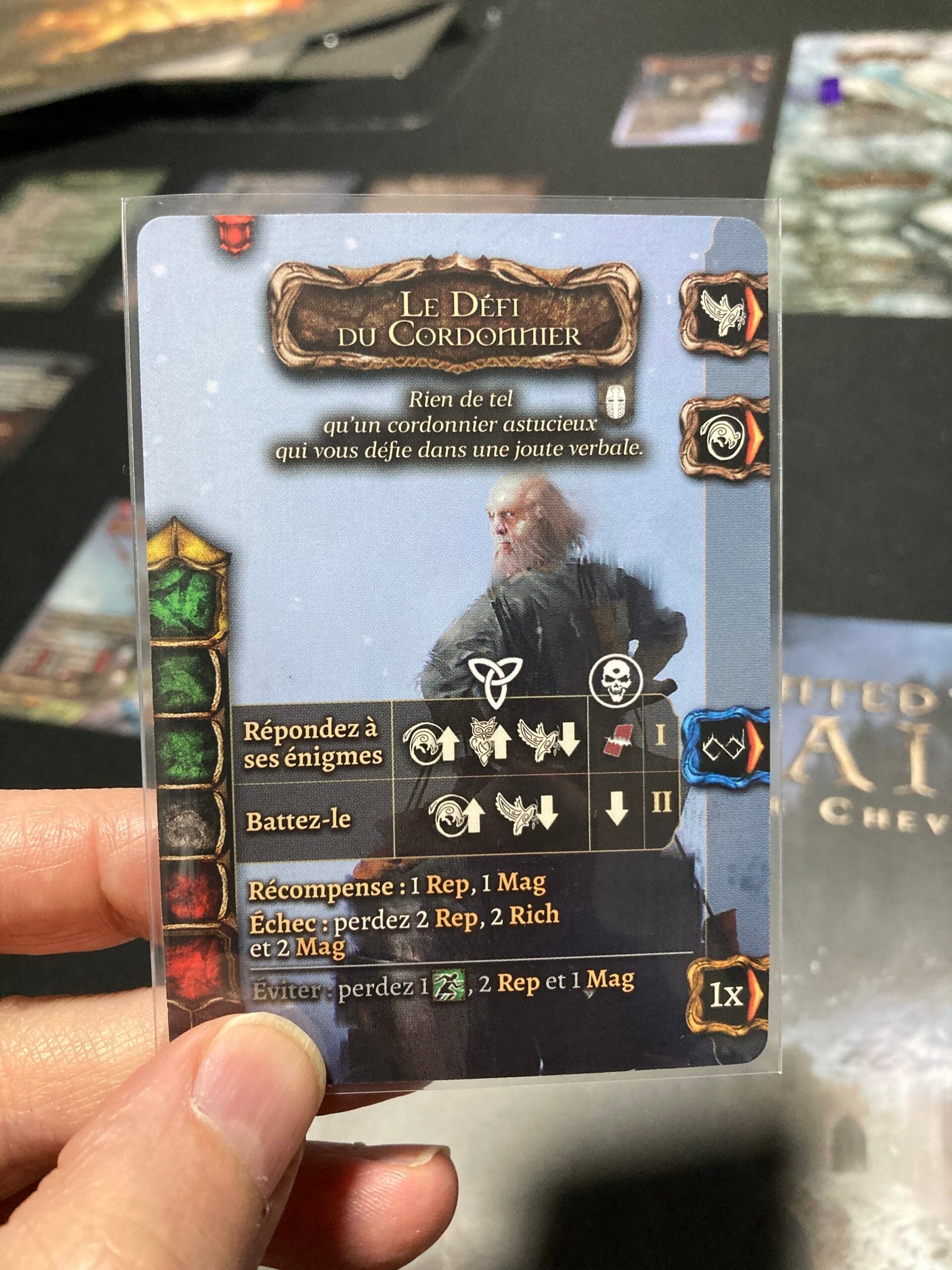 Comme si le destin n’étais pas déjà assez contre nous, nous sommes tombé sur un vieux cordonnier fou qui nous a sommé de le battre en duel dans une joute verbale, n’ayant pas de temps à perdre et plus beaucoup d’énergie nous l’avons envoyer balader; sachant très bien que cela n’aiderait en rien notre réputation…